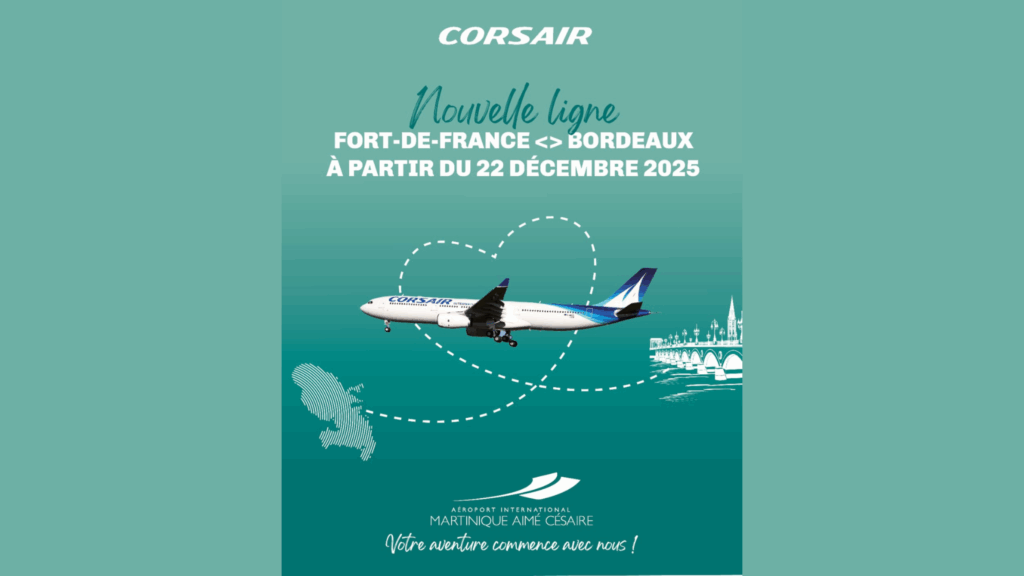 Bonne nouvelle pour les Martiniquais et les Bordelais ! Dès le 22 décembre 2025, Corsair ouvre une nouvelle ligne directe entre Fort-de-France Aéroport International Martinique Aimé Césaire – Officiel et Bordeaux.